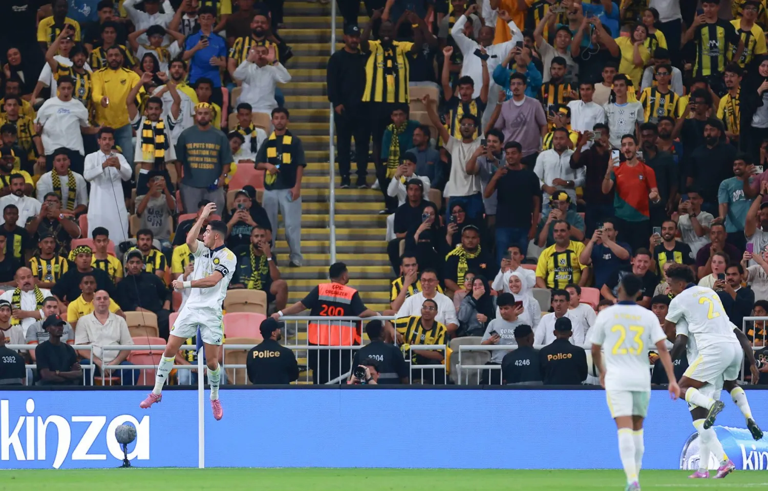 استعاد النصراويون أهزوجتهم الشهيرة «صدارة بس»، في ليلة تفوق فيها رونالدو ورفاقه على اتحاد بنزيمة، بثنائية مع الرأفة في الكلاسيكو الكبير الذي جمع الفريقين على ملعب الجوهرة المشعة بجدة، ضمن الجولة الرابعة من دوري المحترفين السعودي.