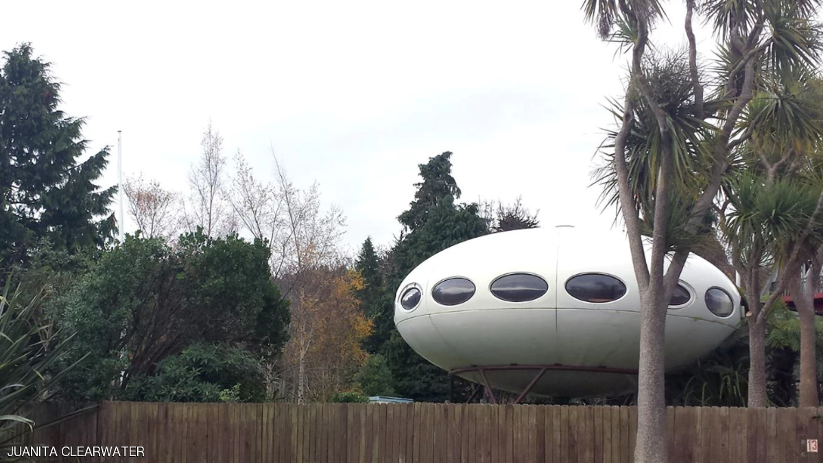 عُرض منزل في نيوزيلندا، أقيم قبل أربعة عقود على شكل بيضاوي، للبيع أمام عامة الناس، لكنه يصلح للسكن فقط، ولا علاقة له بالفلك.