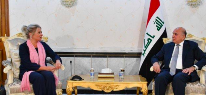 التقى وزير الخارجيّة فؤاد حسين مع السيّدة جينين بلاسخارت ممثلة الأمين العامّ للأمم المتحدة ورئيسة بعثة يونامي في العراق.