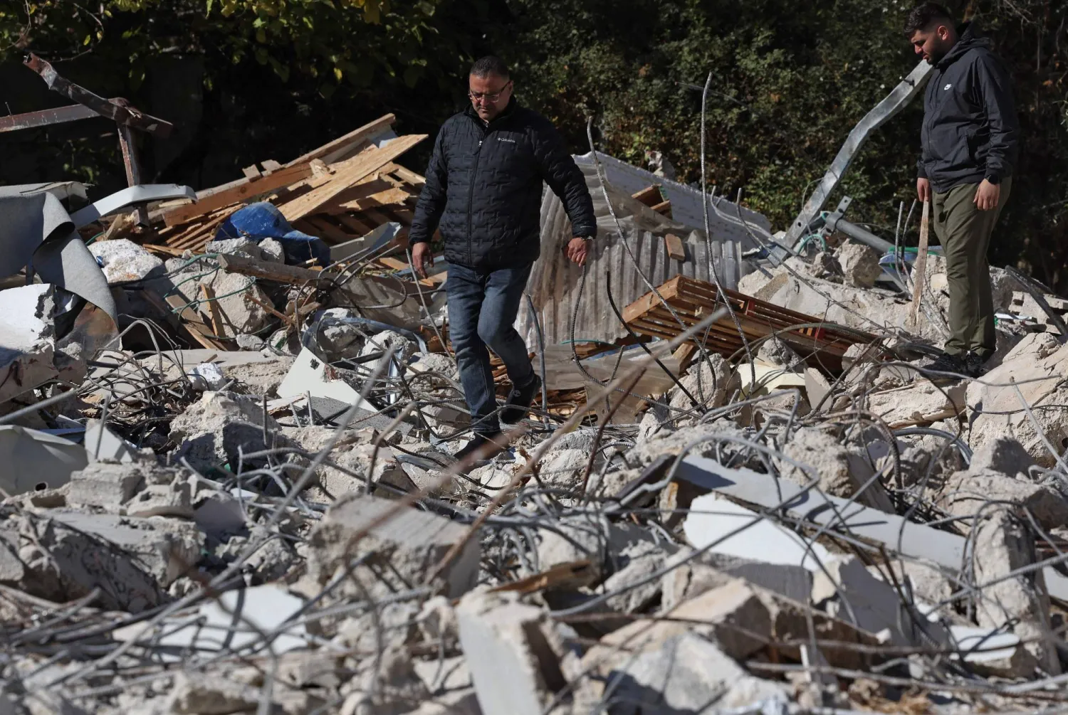 في الجوار، كان عمر الرويضي يجلس حول موقد نار مع ابنه بجانب أنقاض منزله ومنازل 4 من أشقائه هدمتها جرافات البلدية.