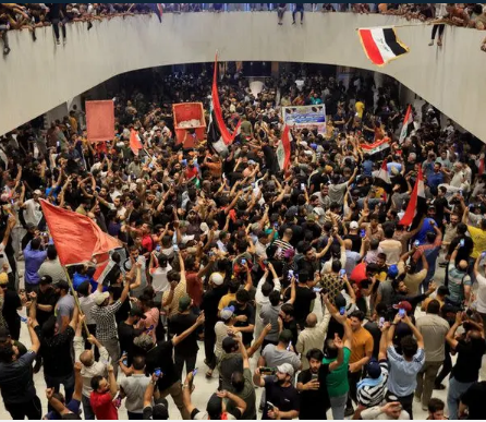 ودخل آلاف من أنصار مقتدى الصدر، الأربعاء، إلى المنطقة الخضراء في بغداد، واحتلوا مبنى البرلمان العراقي لعدة ساعات وهم يهتفون بشعارات مناهضة لإيران ومحمد شياع السوداني، مرشح الجماعات الشيعية المدعومة من إيران لرئاسة الوزراء.