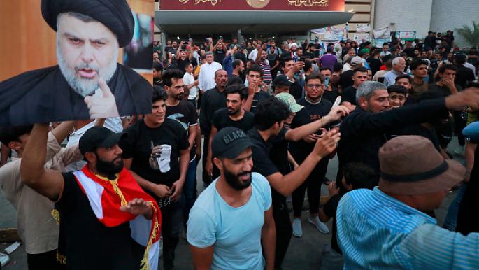 احتجاج لأنصار الصدر أمام البرلمان العراقي 16 أغسطس (أحمد الربيعي/ فرانس برس)
