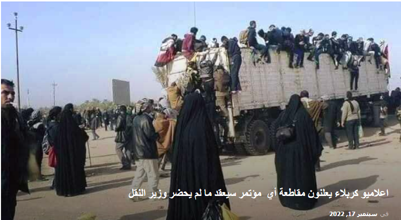 المستقلة / علي النصر الله / .. أعلن مجموعة من اعلاميي محافظة كربلاء، مساء السبت، عن مقاطعة أي مؤتمر صحفي سيعقد، بخصوص نجاح الخطة الأمنية لمراسيم  زيارة اربعينية الامام الحسين عليه ما لم يحضر وزير النقل العراقي “.