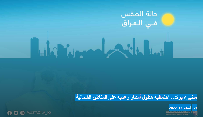 وتوقع الأسدي، “ارتفاع معدلات الرطوبة النسبية في الجنوب، وفرصة لتشكل الضباب على بعض المناطق، وتكاثر في السحب وفرص أمطار رعدية على الشمال”.