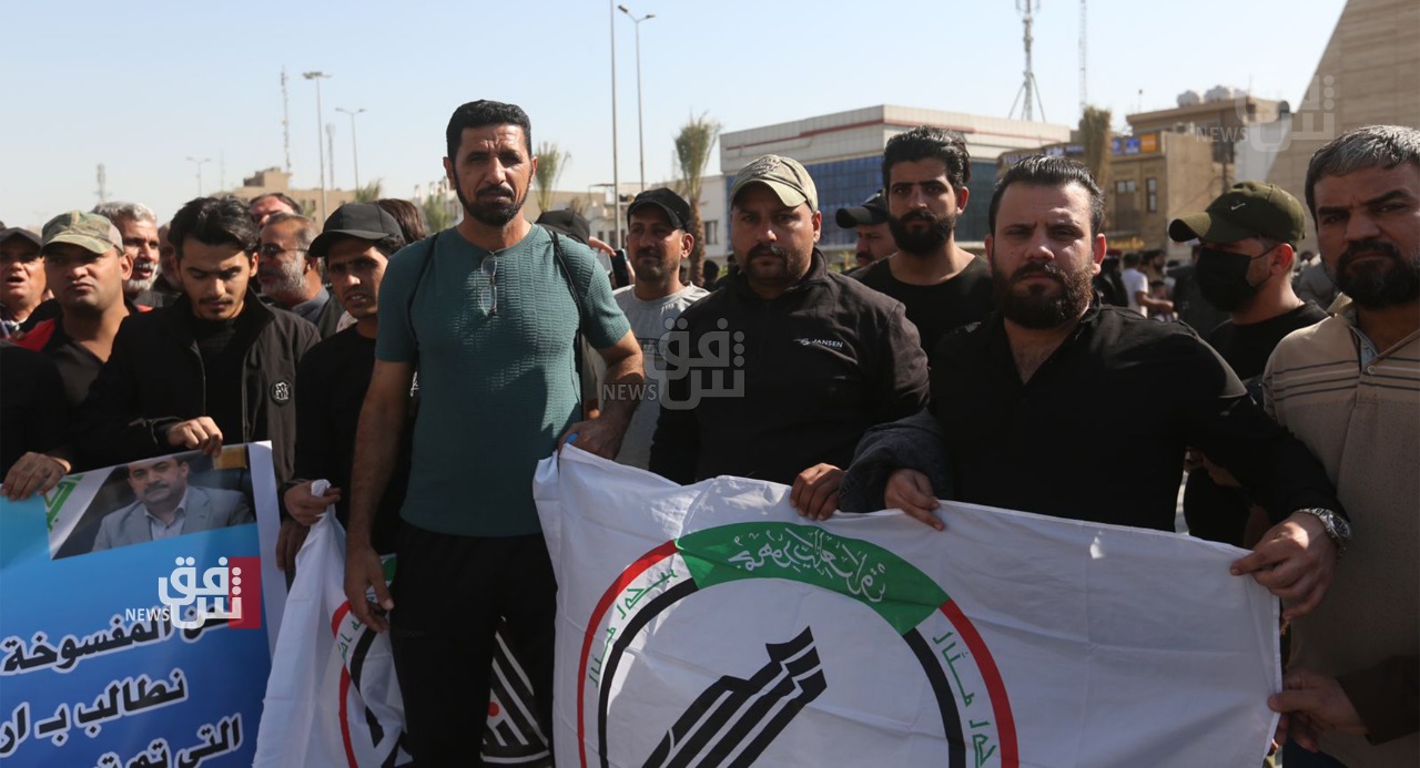 شفق نيوز/ تظاهر العشرات من المفسوخة عقودهم من الحشد الشعبي، يوم الاحد، في ساحة التحرير وسط العاصمة بغداد لغرض إعادتهم للخدمة.