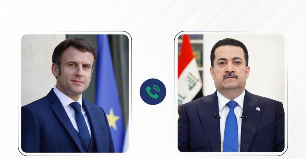 أجرى الرئيس الفرنسي إيمانويل ماكرون، اليوم السبت، اتصالاً هاتفياً مع رئيس مجلس الوزراء العراقي محمد شياع السوداني، وفقا لما أعلنه في بيان المكتب الاعلامي للأخير.