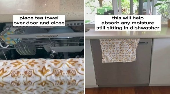 وفي مقطع فيديو نشرته على إنستغرام، أوضحت المستخدمة التي لديها أكثر من 120 ألف متابع أنها تضع منشفة مطبخ نظيفة على باب جلاية الصحون قبل إغلاقه.
