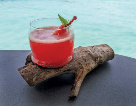 تُخلط المكونات جميعها مع مكعبات الثلج وتُزين بأعواد البطيخ وأوراق الريحان الطازجة.