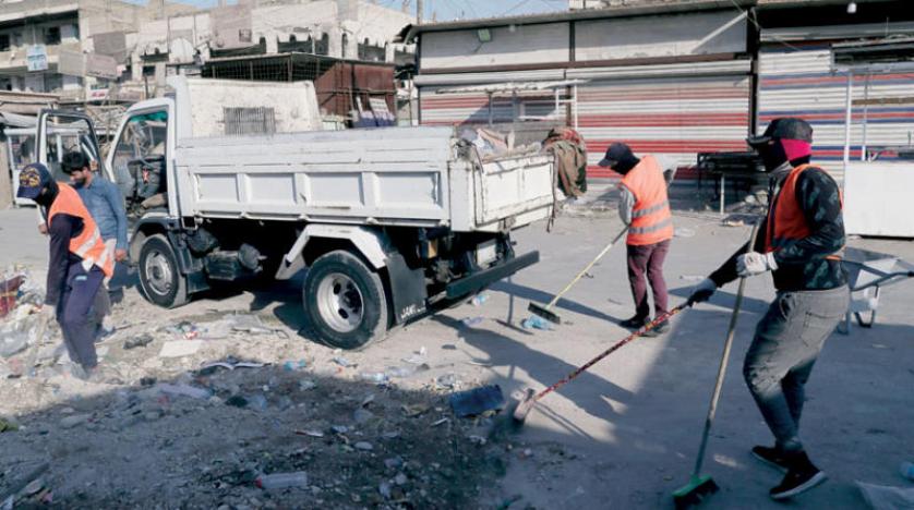 عمال يزيلون أنقاضاً تطايرت نتيجة الانفجار (أ.ب)بغداد: فاضل النشمي