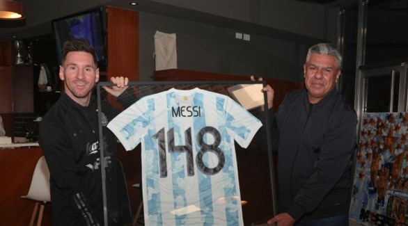 قدم رئيس الإتحاد الأرجنتيني، هدية لميسي وأغويرو عبارة عن قميص يحمل عدد المباريات التي لعبها اللاعبان بقميص المنتخب.