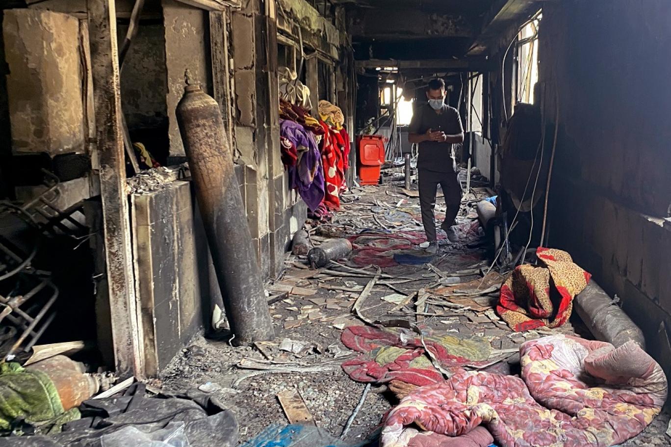 قسم العناية الفائقة في مستشفى ابن الخطيب في بغداد بعد الحريق (أ ب)