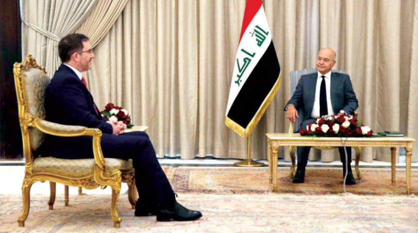 السفير البريطاني مارك برايسون «أبو علي» خلال تقديم أوراق اعتماده للرئيس برهم صالح (حساب سفير المملكة المتحدة على «تويتر»)بغداد: فاضل النشمي
