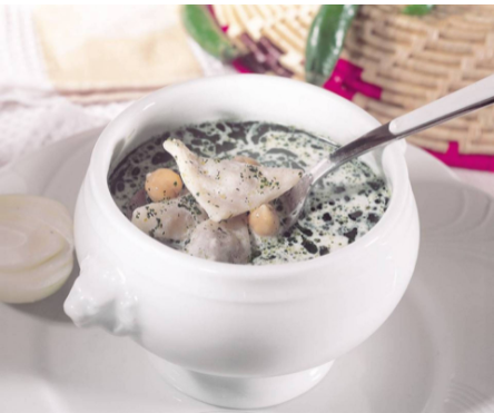 توضع 4 إلى 5 قطع من هذا العجين المقلي في طبق الحساء أثناء التقديم.