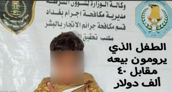 كما وألقت مكافحة إجرام بغداد الأربعاء، القبض على عصابة كانت تعتزم بيع طفل مقابل مبلغ 40 ألف دولار أميركي، حيث كشفت مفارز مكافحة إجرام بغداد/قسم مكافحة جرائم الاتجار بالبشر بالرصافة، عن وجود عصابة ضمن منطقة الأعظمية تروم بيع طفل ومن ثم تهريبه إلى محافظة نينوى.
