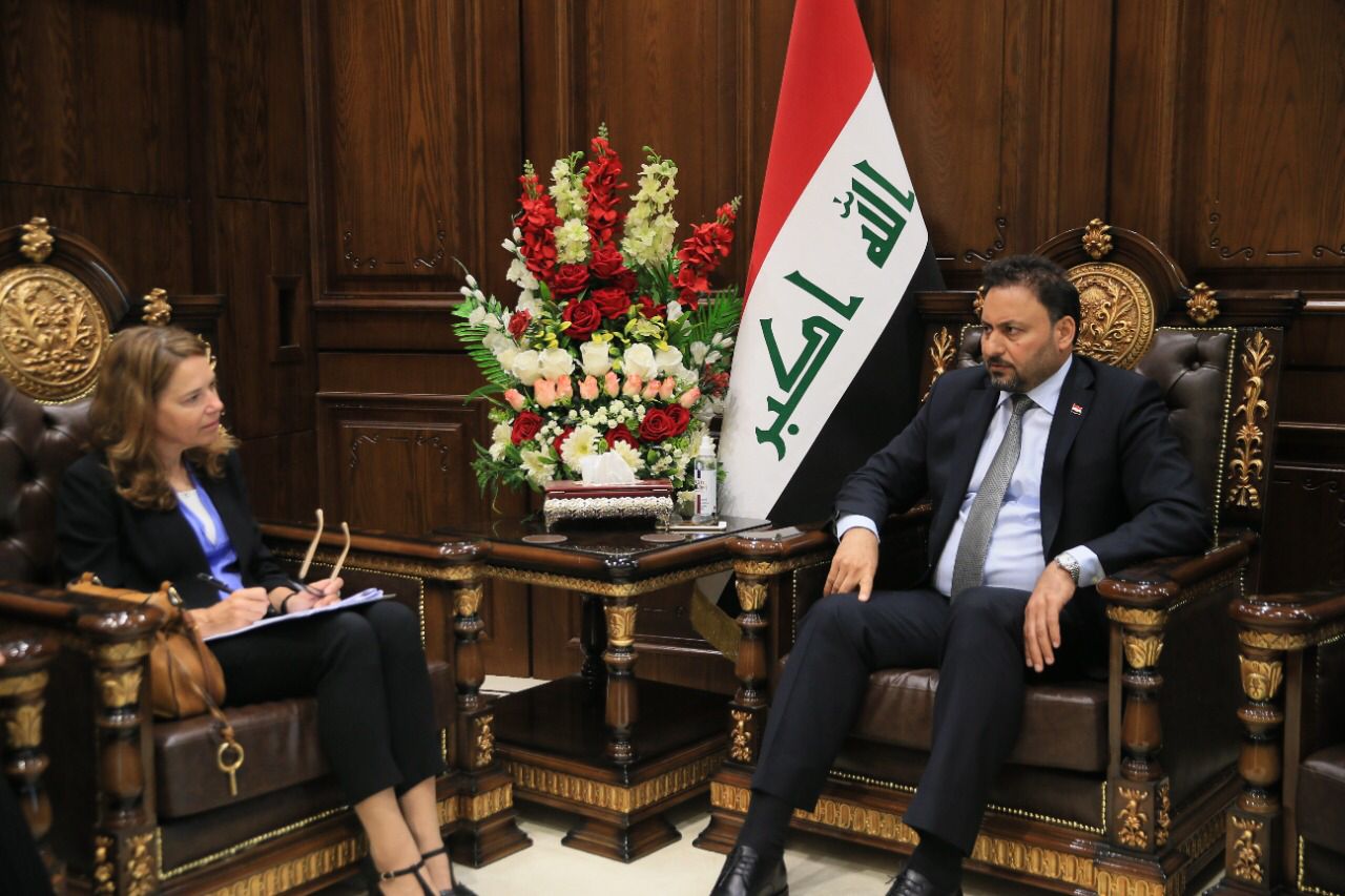 وجرى تسليط الضوء على بعض الملفات منها ملف النازحين، حيث شدد الكعبي على ضرورة إغلاق مخيمات النازحين نهاية العام الحالي والعمل على إعادتهم لمناطقهم بعد ان تم تأمينها بشكل كامل , داعيا إلى ضرورة التنسيق بين البعثات الدبلوماسية ووزارة الهجرة كونها تحتاج لدعم دولي لتنفيذ برامجها وإنهاء الملفات الموكلة إليها , موضحا ان الحرب التي قادها العراق ضد عصابات داعش مثلت نقطة لتلاحم المجتمع الدولي , فخطر داعش لم يقع على العراق وحده بل على الانسانية