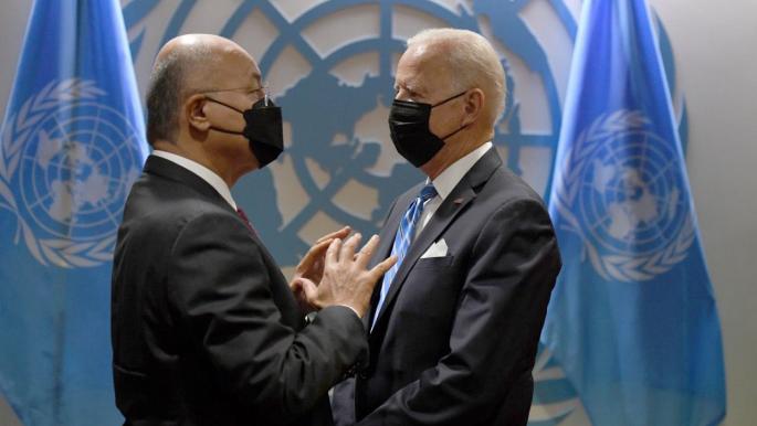التقى الرئيس العراقي برهم صالح، مساء الثلاثاء، الرئيس الأميركي جو بايدن على هامش اجتماع الجمعية العامة للأمم المتحدة في نيويورك.