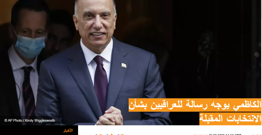 وجه رئيس الوزراء العراقي مصطفى الكاظمي، رسالة إلى الشعب العراقي بمناسبة اقتراب الانتخابات المقبلة، المقرر إجراؤها في أكتوبر/ تشرين الأول المقبل.