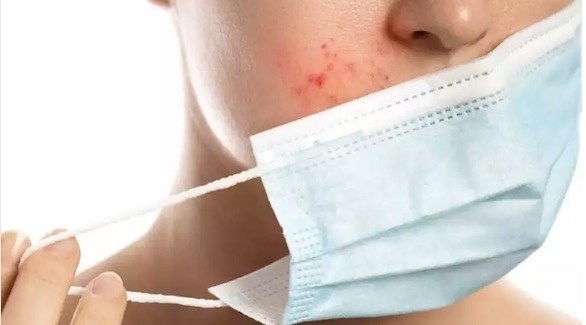 ومن بين أكثر الآثار الجانبية شيوعاً لارتداء القناع، هو حب الشباب الذي ينشأ نتيجة انسداد مسام الجلد بالزيوت وخلايا الجلد الميتة والأوساخ.