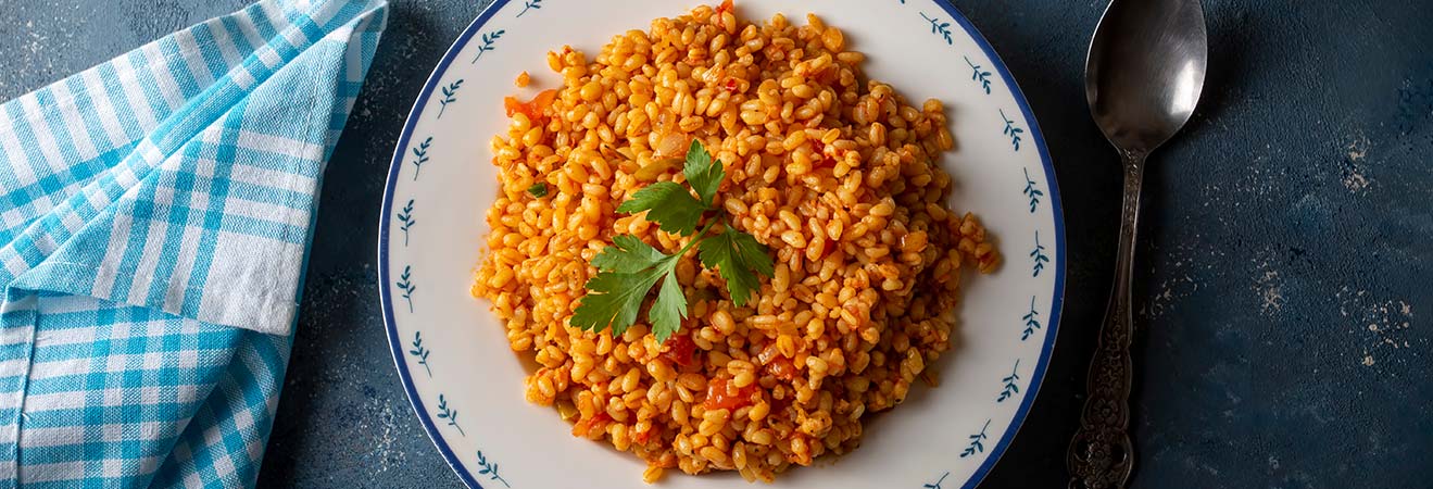 - يسكب البرغل في طبق ويزين بالبقدونس