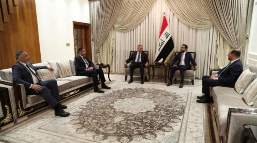 رئيس الوزراء العراقي مصطفى الكاظمي يلتقي رئيس البرلمان المنتخب محمد الحلبوسي أمس (رويترز)