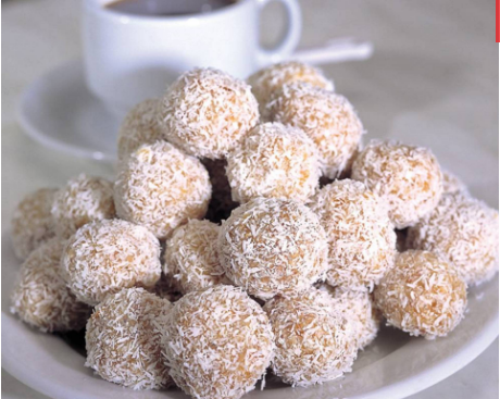 تحضر كرات من هذا المزيج وتغمس في الجوز أو جوز الهند.