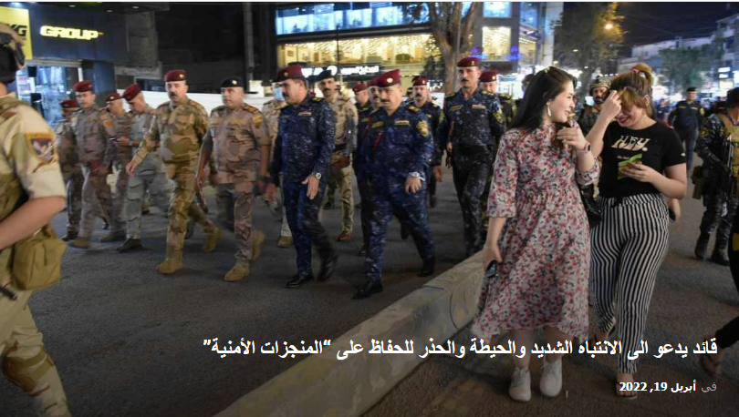 وكان القائد العام للقوات المسلحة مصطفى الكاظمي وجه، أمس الإثنين، الأجهزة الأمنية بأخذ الحيطة والحذر، ورفع مستوى الجهوزية للرّد السريع، والاستمرار في متابعة زخم العمليات التي أمّنت شهر رمضان.