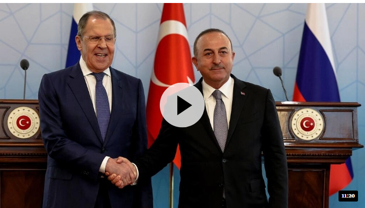 قال وزير الخارجية التركي مولود تشاوش أوغلو الأربعاء إن بلاده تعتبر أن طلب موسكو رفع العقوبات عن الصادرات الزراعية الروسية لتسهيل الصادرات الأوكرانية “مشروع”. وأضاف أوغلو  الذي استقبل نظيره الروسي سيرغي لافروف في أنقرة لبحث مسألة صادرات الحبوب الأوكرانية عبر البحر: “إذا كان علينا فتح السوق الأوكرانية الدولية، فنعتقد أن إزالة العقبات أمام الصادرات الروسية أمر مشروع”. بدوره، قال لافروف إن موسكو “مستعدة” بالتعاون مع أنقرة لضمان أمن السفن المحملة حبوبا التي تبحر من المرافئ الأوكرانية. وأوضح: “نحن مستعدون لضمان أمن السفن المغادرة للموانئ الأوكرانية (…) بالتعاون مع زملائنا الأتراك”.ما المنتظر من زيارة لافروف لتركيا؟