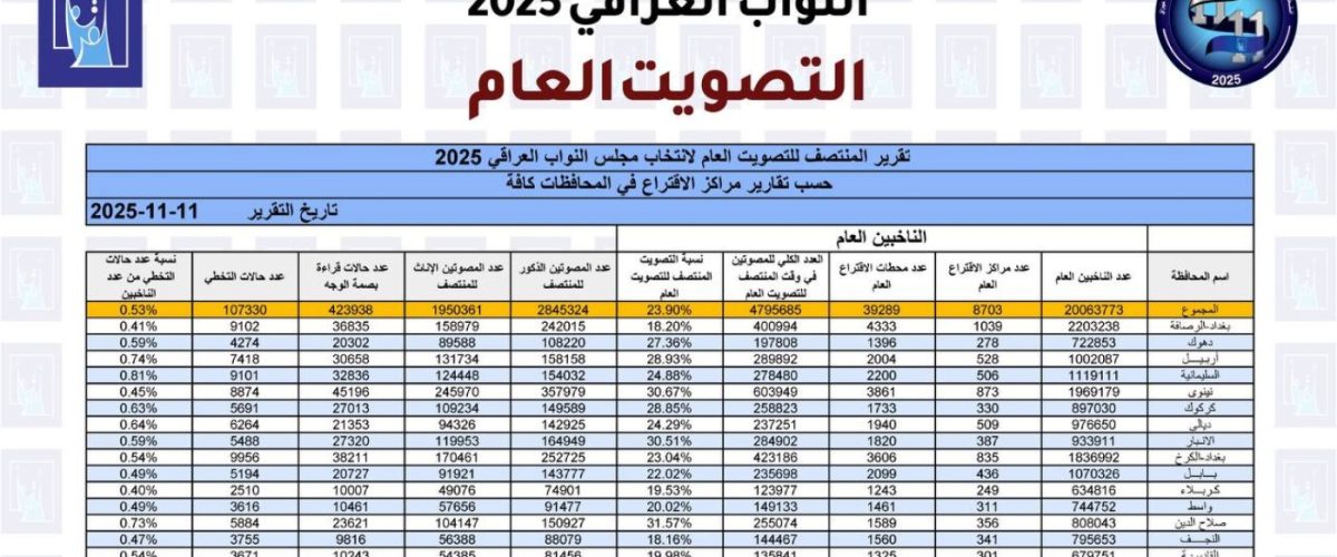 تنشر “الجبال” تقرير المنتصف للتصويت العام للانتخابات البرلمانية 2025.وبلغت نسبة المشاركة في التصويت العام بتقرير المنتصف 23.90 %”. ... أكمل القراءة ...